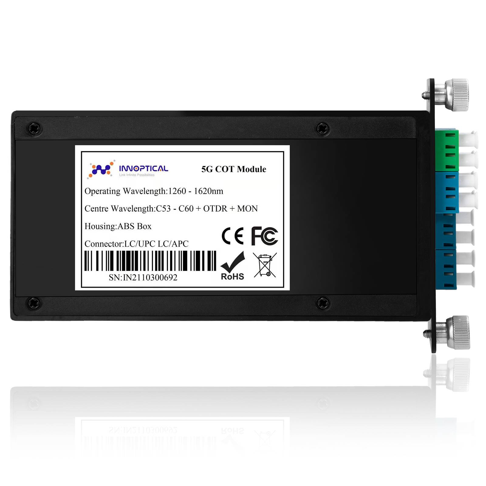 Innptical’s IN-CWDM-CHxx-COT CWDM technology uses ITU standard 20nm spacing between the wavelengths, from 1270nm to 1610nm. Our CWDM module has 2 to 18 channels. The central wavelength of each channel is specified to one of the ITU-T grid wavelengths. The CWDM module features wide channel bandwidth (13nm). Its isolation is greater than 30dB for adjacent channels, and greater than 40dB for non-adjacent channels. The module also has high thermal stability to ensure reliable performance under different environment.